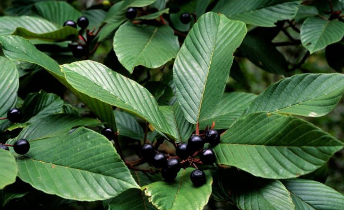 ![]() A small, deciduous tree or shrub with greyish-black bark that grows to about 10 metres tall. It is valued for its bark, which contains a laxative of the same name. Notes 1. It reproduces by small seeds inside its small black berries, which are eaten and transported by birds. 2. The Nuu-chah-nulth people used the wood to make chisel handles, and the Skagit people produced a green dye from the bark. 3. Spanish priests in California named the tree Cascara sagrada, meaning "sacred bark," perhaps because of (1) the bark's medicinal properties or (2) its resemblance to the wood used for the ark of the covenant. (Source: BC Government ) |