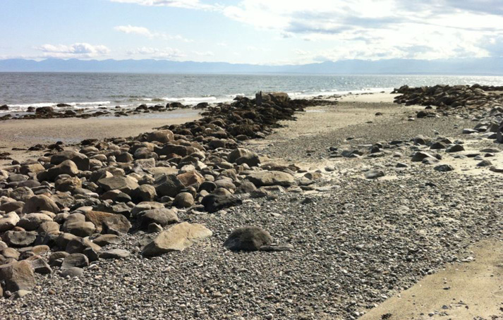 ![]() The groynes at Savary Shores A groyne (or groin) is a structure built along the shore whose purpose is to interrupt water flow and limit the movement of sediment. There are several of them along the Sunset Trail. Ian Kennedy describes their creation: "In 1965 a group including Wilbur G. Bird, Ann Mark and Alistair N. Stewart, and under the multiple banners of the Savary Beach Lands, Savary Resort Properties, and Savary Island Estates, bought about 400 lots in DL 1377 from Al Taylor and another 80 or so lots in DL 1376 east of Taylor's original purchase. To enhance the salability of some of these lots, the group hired a bulldozer operator, Gary Carter, to clear away the rocks on the beach in the south-west section. He pushed them into long groynes and thereby created the little beaches or boat-landing areas so easity visible from the Sunset Trail." (Source: Kennedy, 1992, p155) ![]() Notes 1. There are also a series of groynes at Savary Shores that were constructed in, I believe, the 1970s. If anyone knows more about this — the whos, the whens, and the whys — please contact me using the feedback form below. |