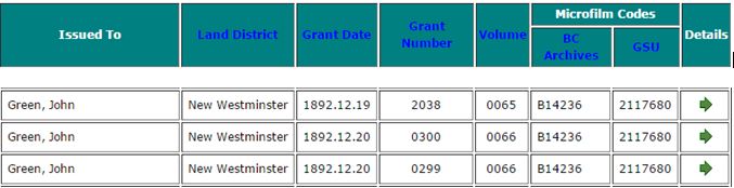Drabble in 1891, John Green applied for BC government crown grants for DL 1372, DL 1375, and DL 1377. The information on these crown grants can be viewed by: