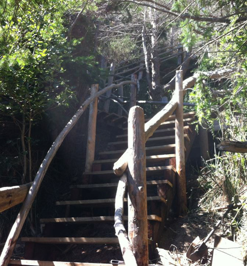 ![]() This magnificent piece of architecture descends from Sutherland Road to Bachelor beach. It was first built in 2002 by Guy Belair and Russ Bachelor. They wanted a stairwell that was safe for children to walk down to the beach on, so they built it themselves. ![]() But stairs deteriorate, so every summer a volunteer work-crew is needed to repair and upgrade them. If you'd like to volunteer, call Guy Belair. After the work party, there's a party party that's lots of fun. ![]() A work party upgrades the stairs in July 2015. Pictured (front to back): Guy Belair, Randy Mottus, and Niko Mottus. |
